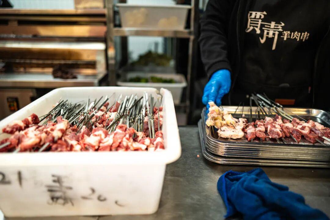 進門就看見開放式的廚房櫃檯上擺放的各種肉串。