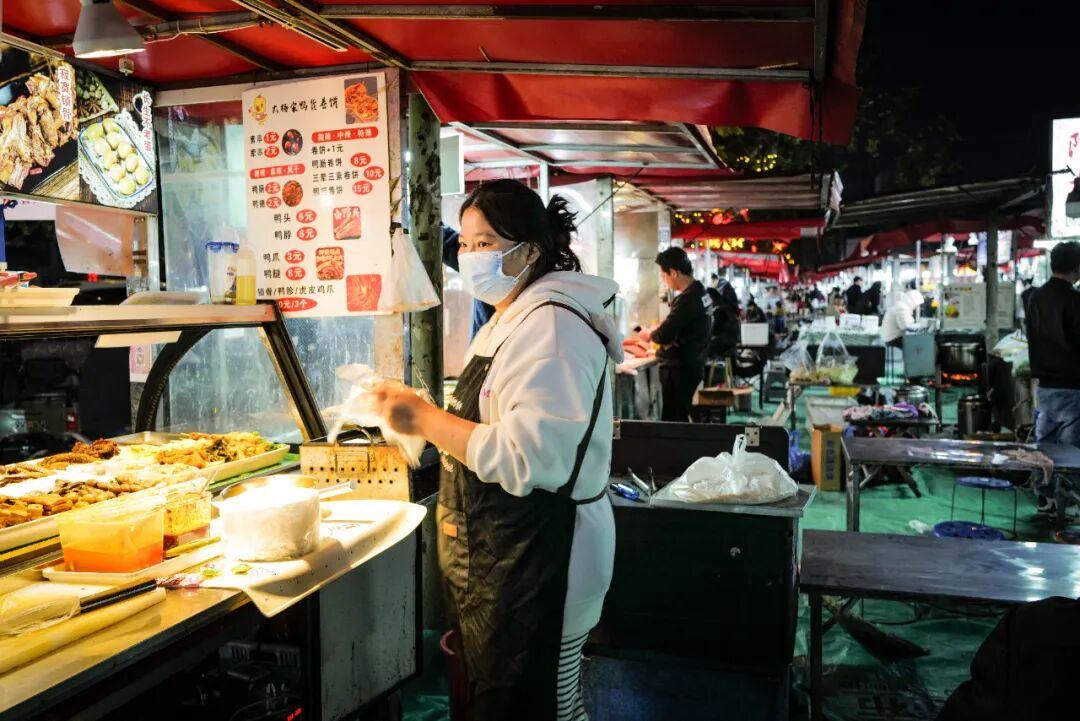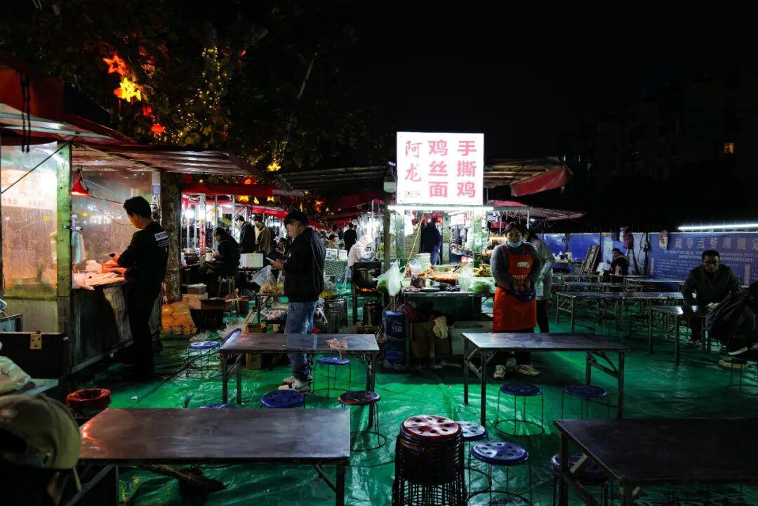 一入夜。街面上亮起燈光,支起桌椅板凳,入眼便是各種顏色的招牌。攤主們忙碌的身影、食物散發的誘人色澤,眼前一幕活色生香。