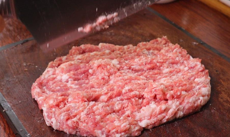 1、做餃子餡首選前腿肉,自己剁的肉喫起來會更香,首先把豬肉剁成肉餡,然後先放一邊。
