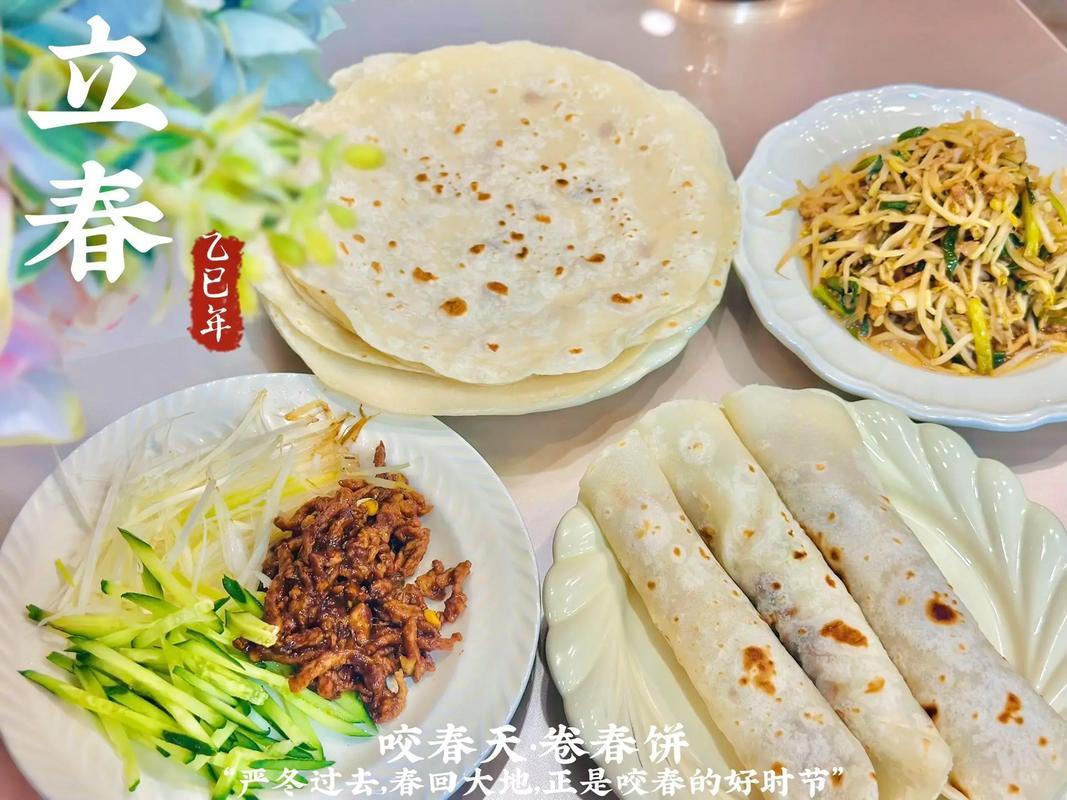 習俗寓意:迎春納福:薄餅如春日薄雲,包裹萬物生機,象徵接納春天的福氣。五穀豐登:蔬菜與肉類的搭配寓意“有菜有肉”,反映農耕社會對富足生活的期盼。驅寒保暖:立春雖至,但寒氣未消,溫熱的春餅能暖身驅寒,順應“春捂”養生原則。
