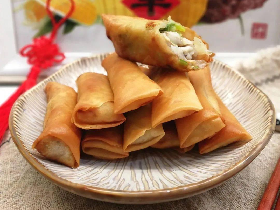 習俗寓意:辭舊迎新:油炸過程象徵“炸走晦氣”,金黃外觀寓意財富與光明。生機勃發:餡料多用春季時蔬,如薺菜、香椿,象徵萬物復甦。團圓美滿:春捲形狀如元寶,寓意家庭富足、團圓和睦。