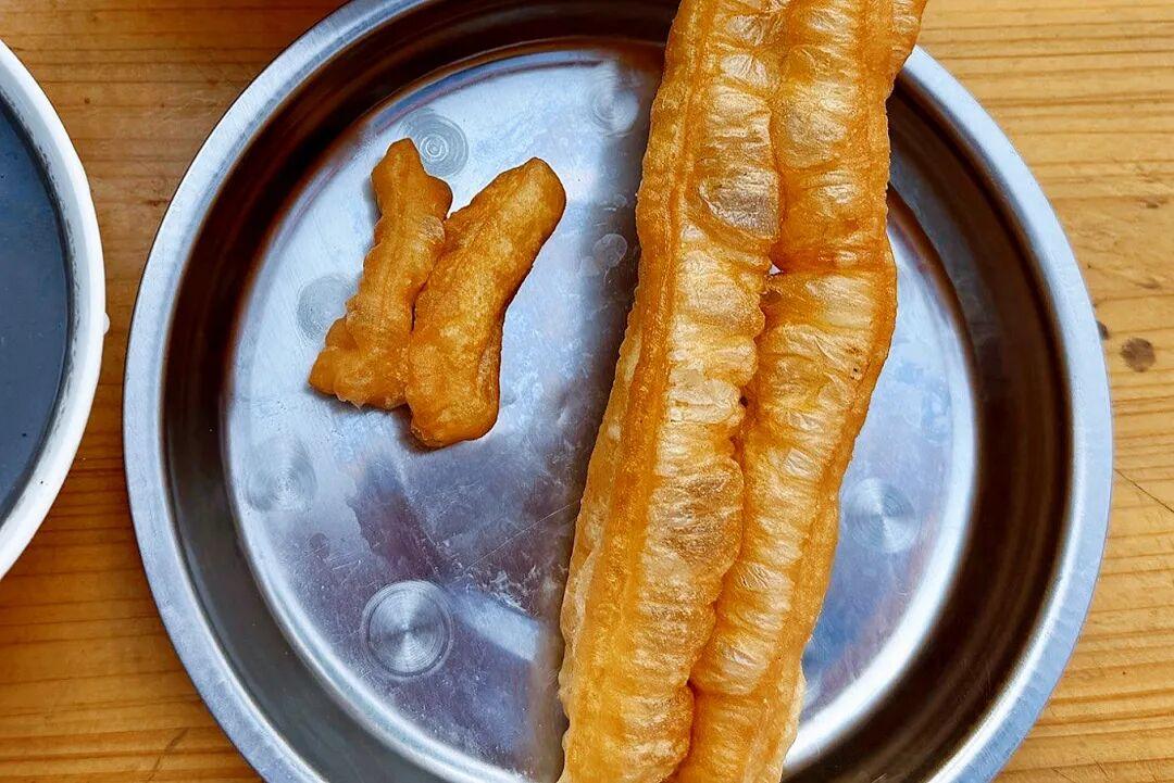 按照本地人的喫法就是配上一根大油條,然後泡進杏仁茶裏面,甜鹹交織,很奇怪但是很上頭的味道。