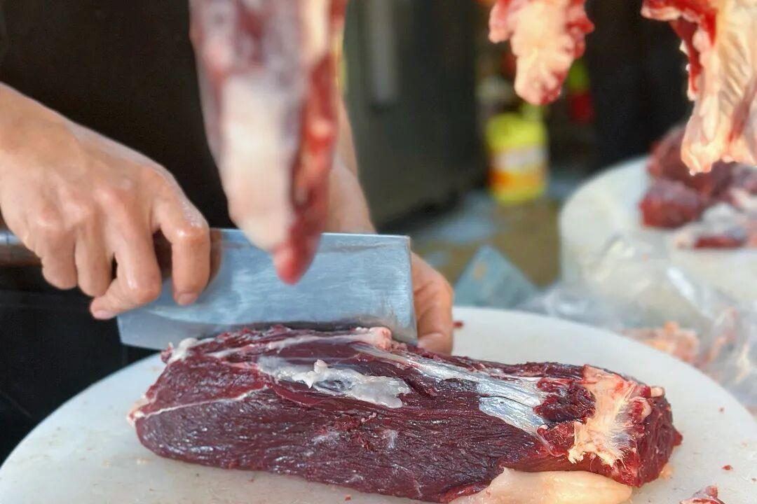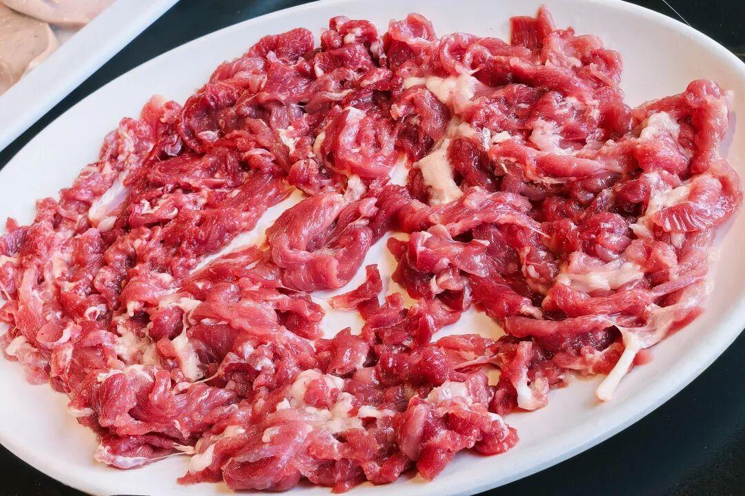 進門可見明檔切肉臺,師傅手起刀落間,新鮮牛肉的紋理清晰可見,煙火氣十足。