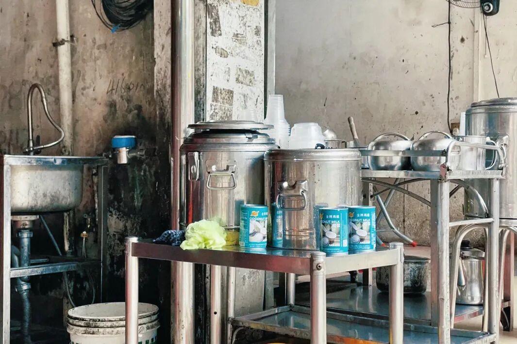 老闆就在門口現熬現煮,杏仁香混着油條熱氣飄滿整條街。