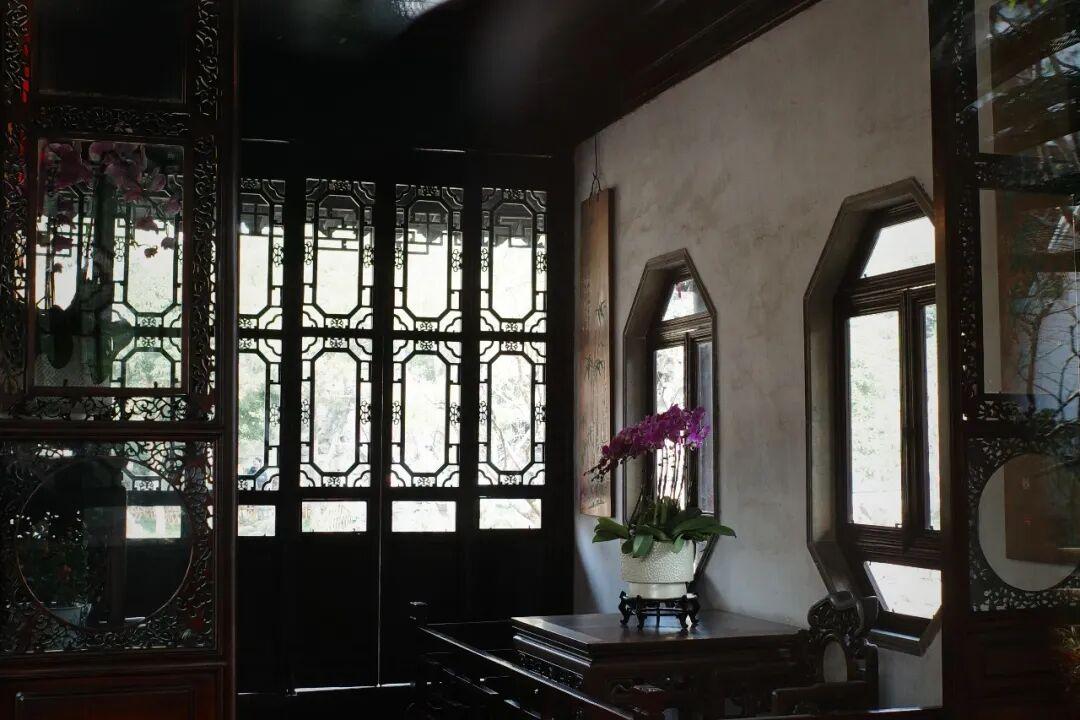 這條臨水的復廊是園林靈魂,透過廊上108式各不相同的花窗看出去,園內山景與園外水景相互借取,一步一景,堪稱框景藝術的教科書。