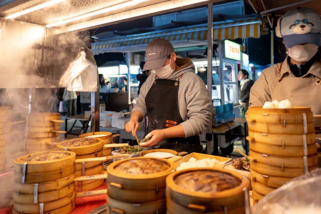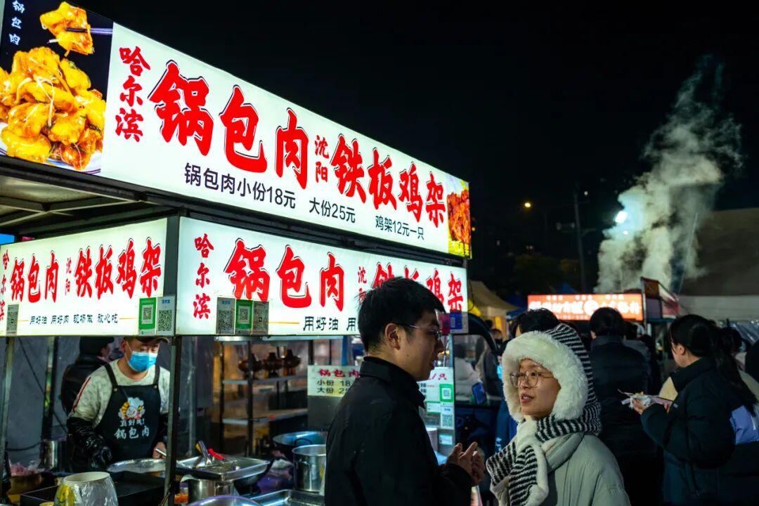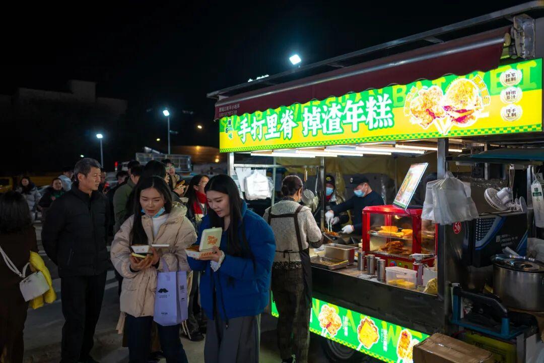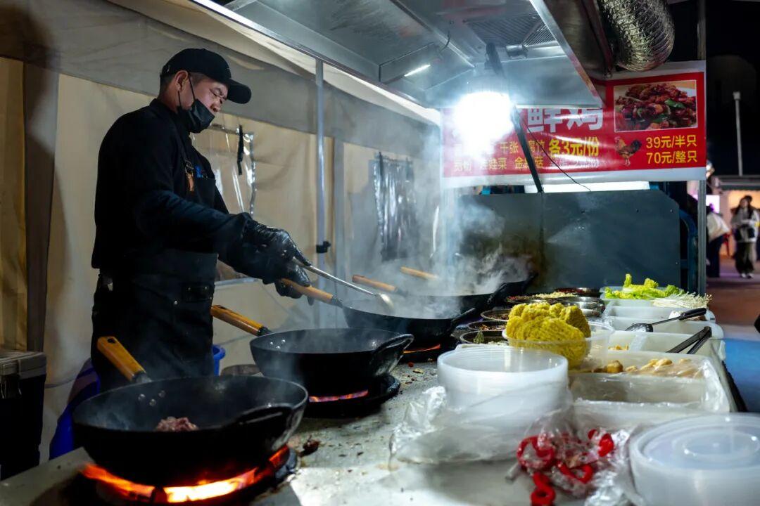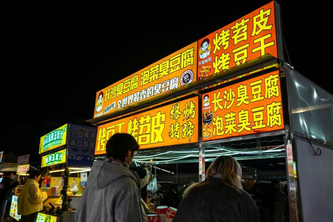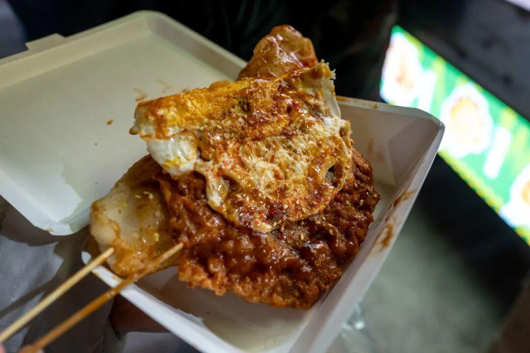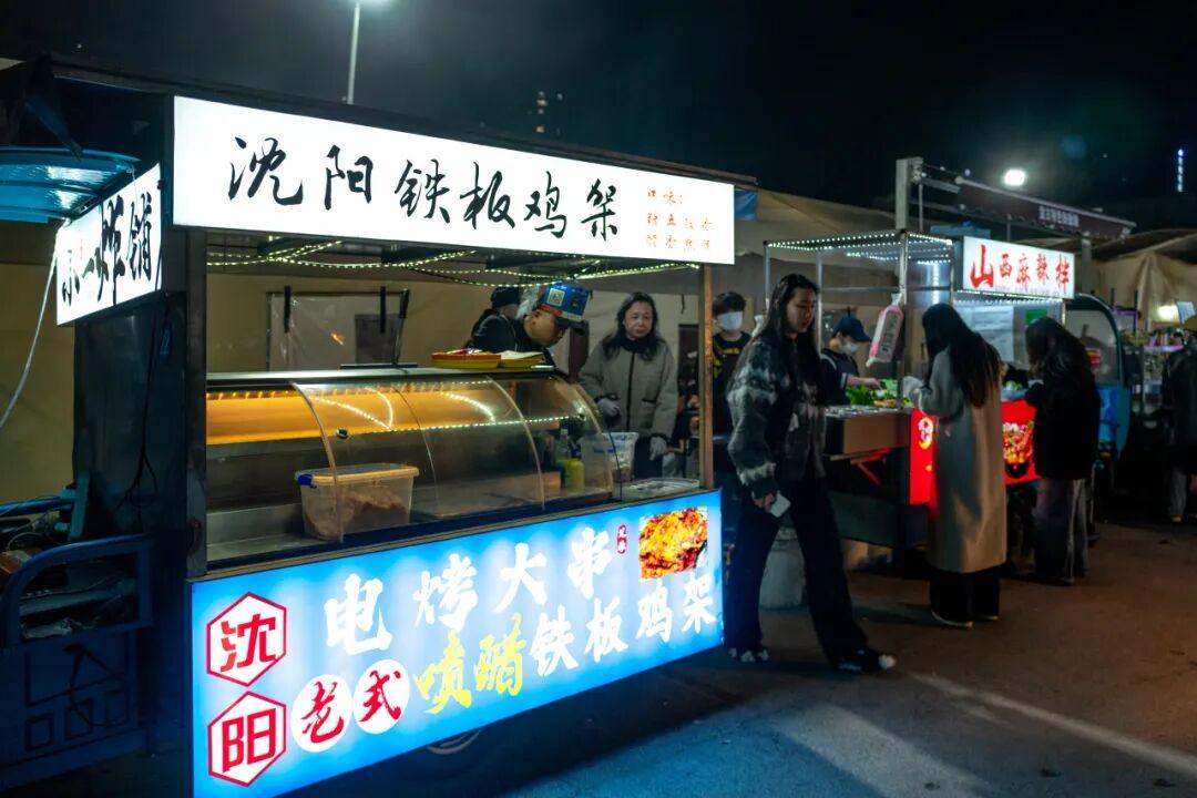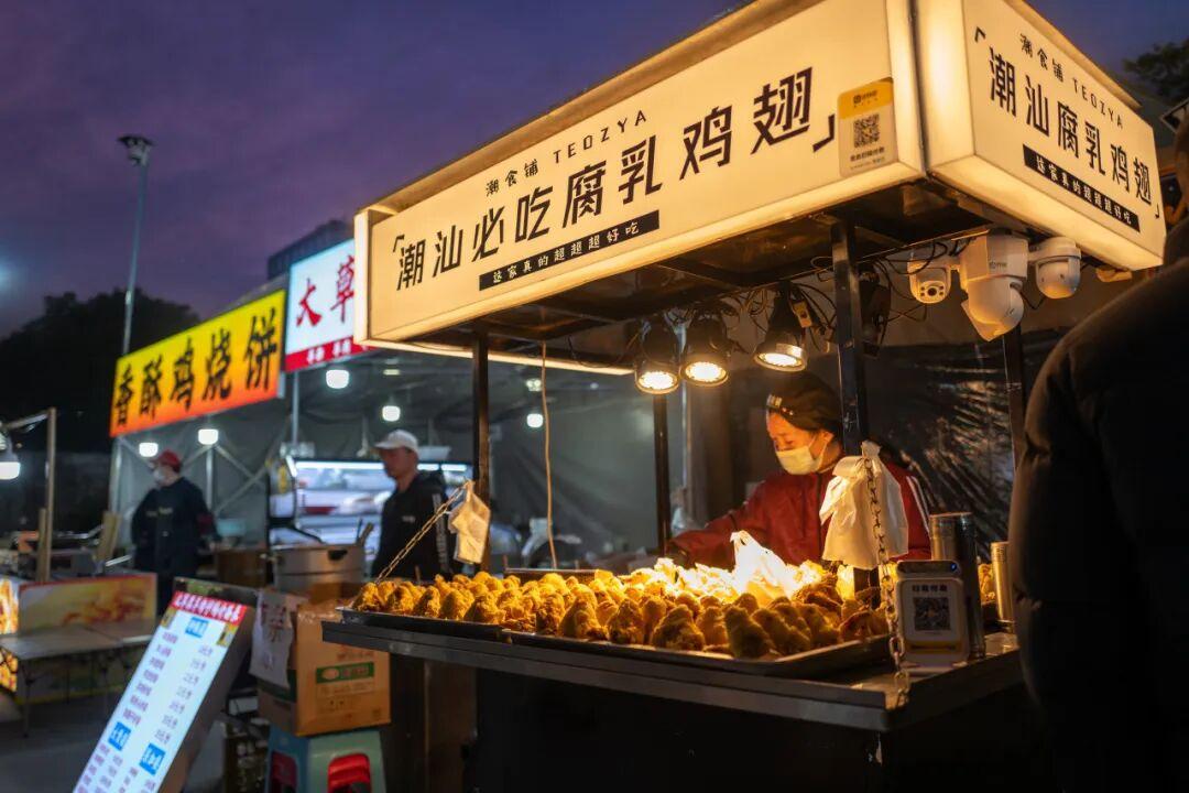 夜市的攤位數量,目測有百來家,集合了各省市出圈美食,像貴州的蛋包洋芋、東北老式麻辣燙、廣西酸嘢、南昌水煮、潮汕牛雜,都有。