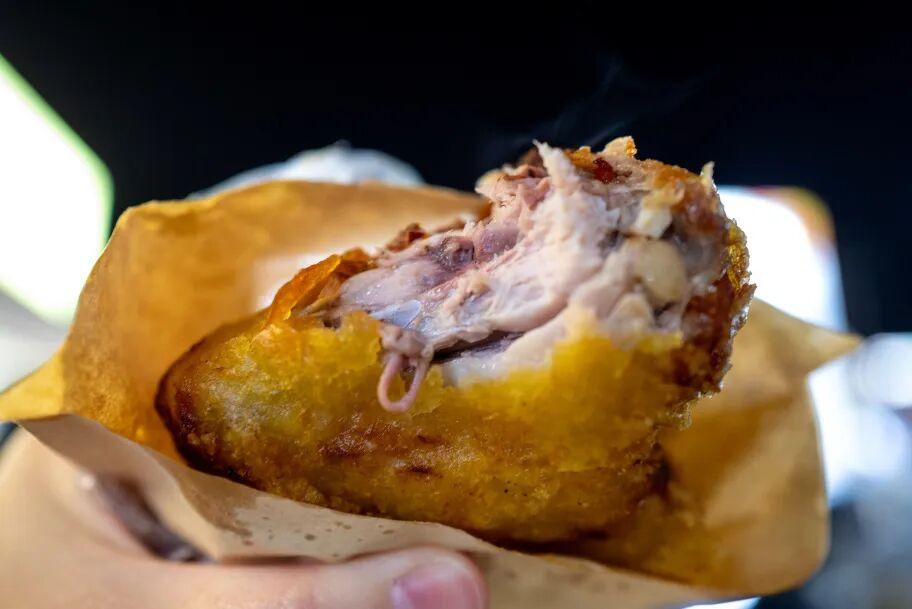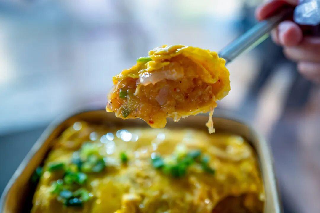 蛋包洋芋的口感糯中帶脆,糯的是軟爛的洋芋,脆的是解膩的酸蘿蔔,兩者合體就是一道“經典詠流傳”,反正就是兩個字,好喫!