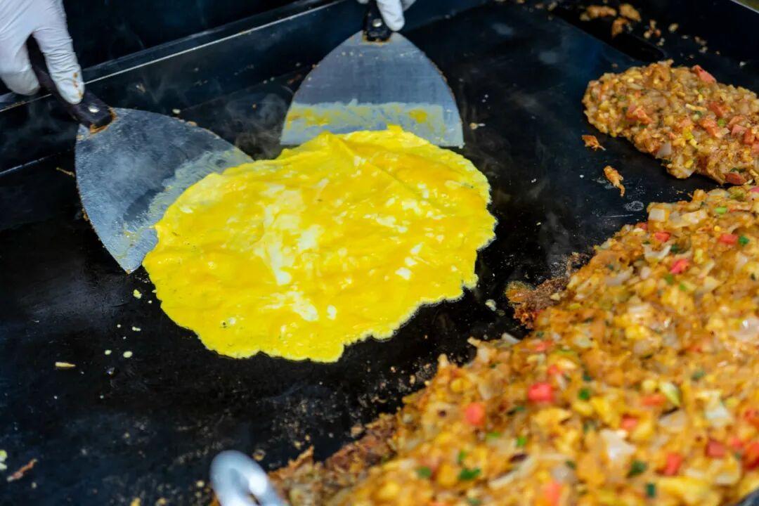 盤古特色鐵板燒,蝦龍圩排隊王了。鐵板燒是糖醋口的,攤主煎的流心蛋廣受好評。