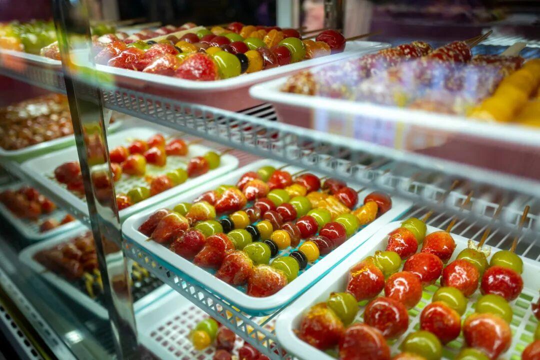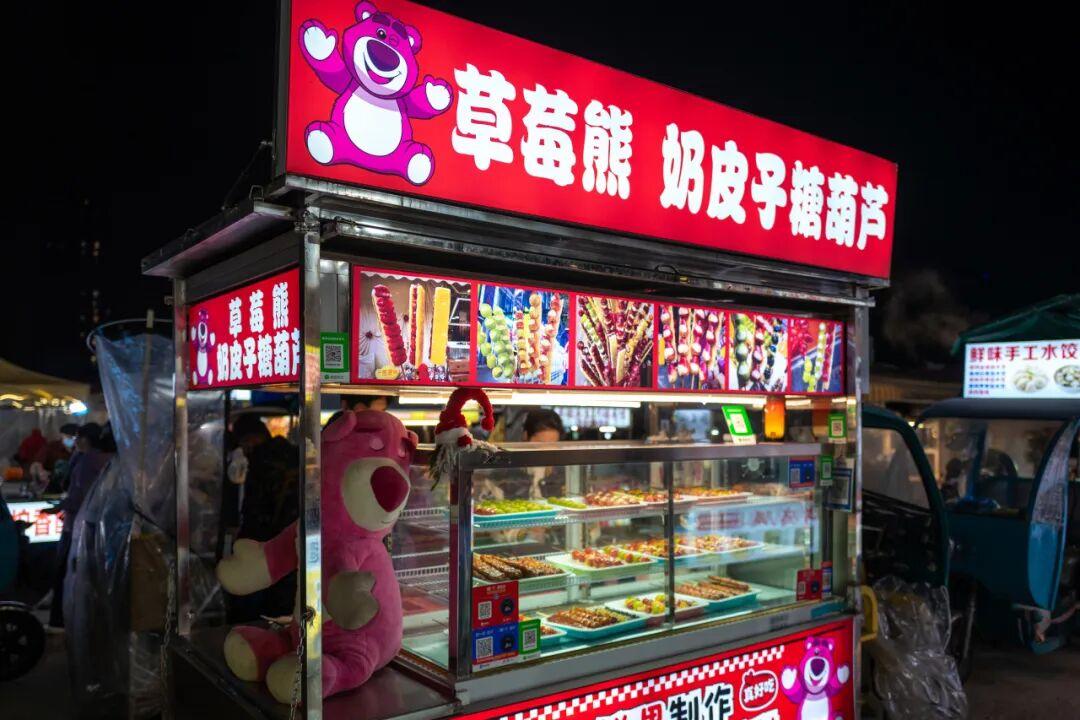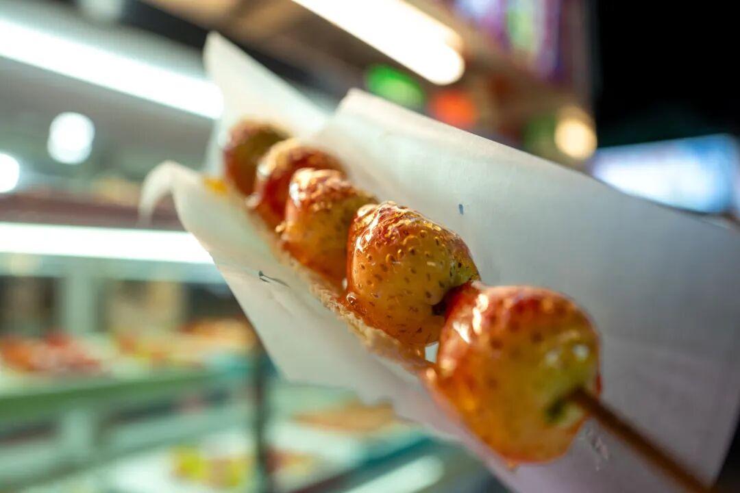 最近美食圈又颳起了奶皮子糖葫蘆風,這家攤位就有賣。但說實話,不太能喫明白奶皮子和冰糖草莓這個組合。
