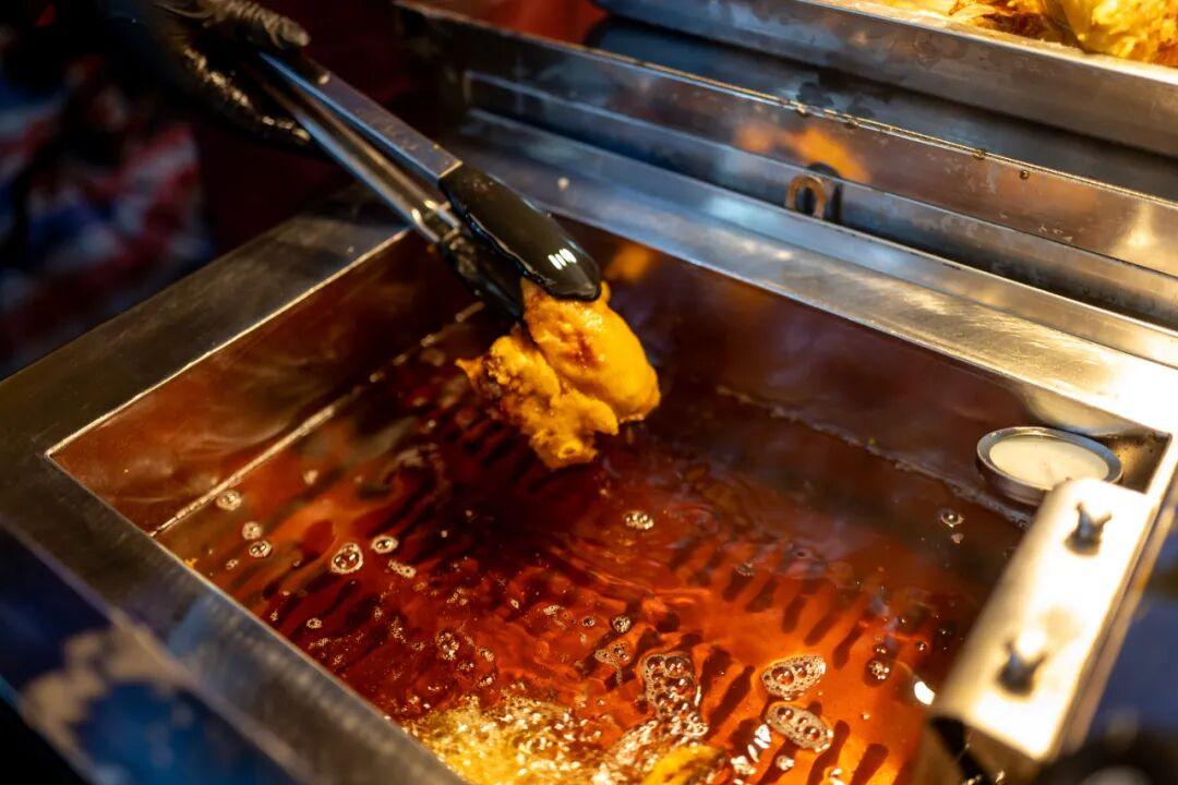 蝦龍圩夜市的人氣王矩陣中,有一家生炒鮮雞店。五口鐵鍋一字排開,師傅都掄出麒麟臂了。