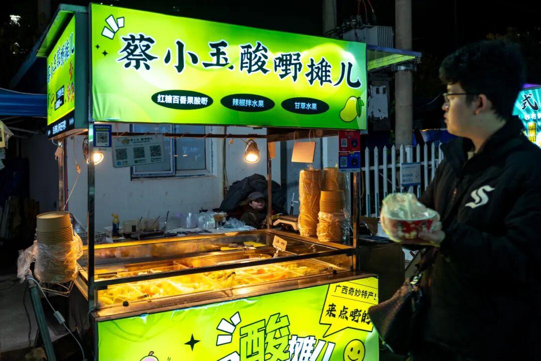逛夜市第一圈,我就相中了這家酸嘢攤,飯後水果是一場血糖接力,非必要的,但架不住味覺上的清口解膩。
