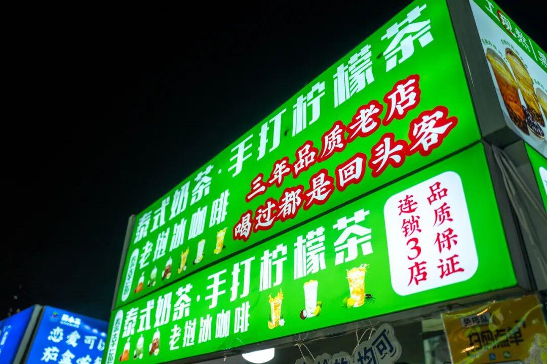 夜市的解膩神器,少不了手打檸檬茶。我去的這家飲品攤也賣泰式奶茶,珍珠是現煮的。