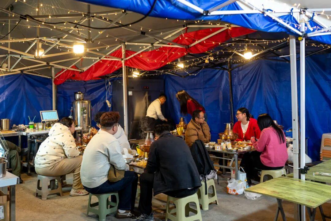雖然是夜市,蝦龍圩的衛生環境也是“體面”的。中心攤位區鋪了地磚,支起的帳篷燈光明亮,看起來就暖和接地氣。遊客們左手擼串右手炫餅,喫出了“可汗大點兵”的氣勢。