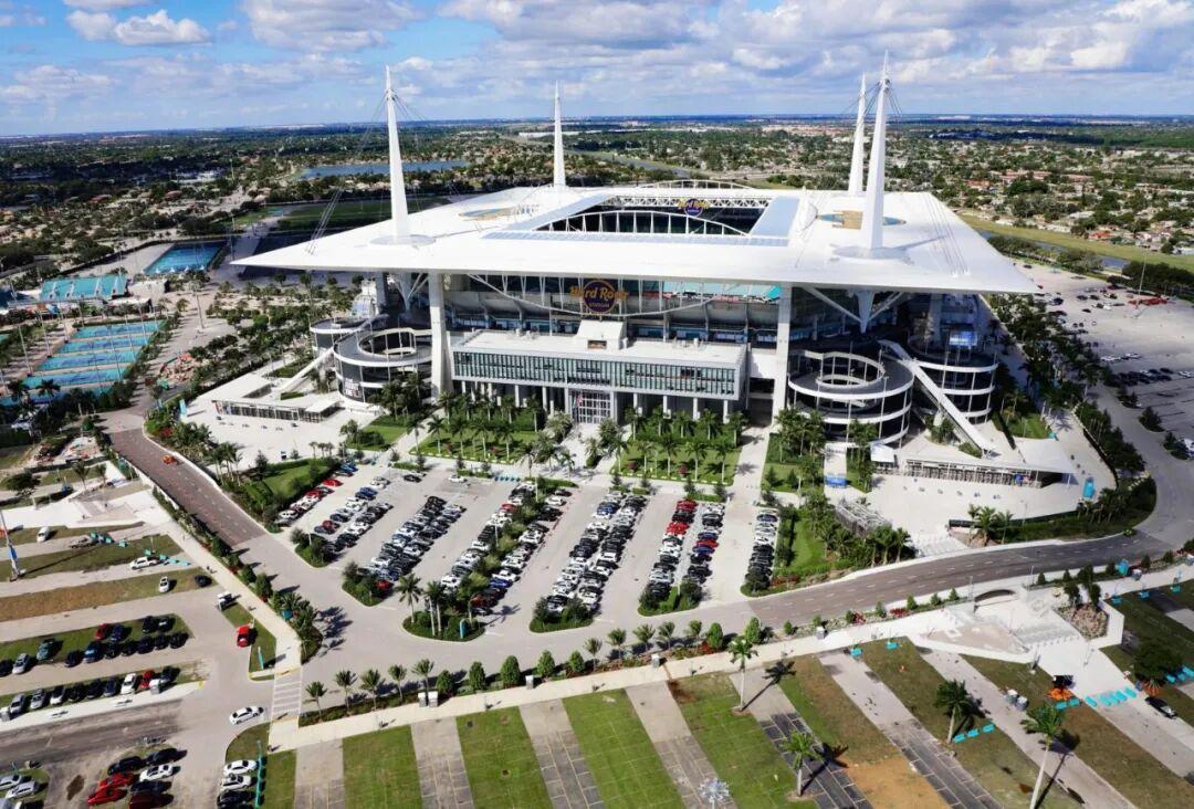 NFL邁阿密海豚隊的主場,能坐6萬多人。這個體育場有個超大的LED屏幕和可開合的頂棚。