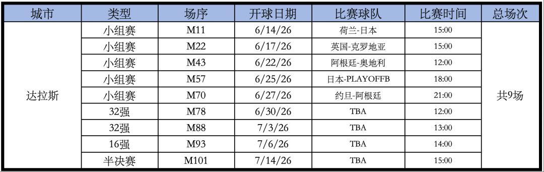 AT&T Stadium體育場的比賽如下,總共9場。