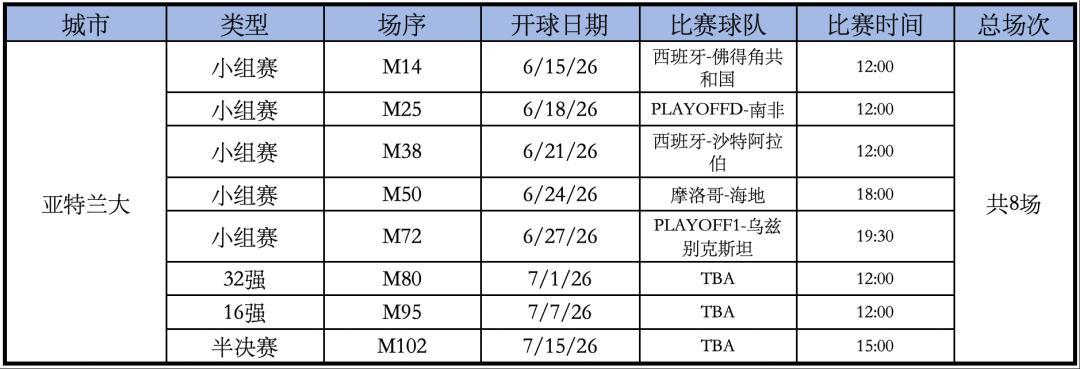 Mercedes-Benz Stadium體育場的比賽如下,總共8場。