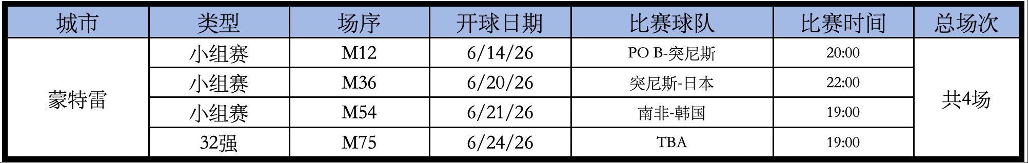 美加墨世界盃舉辦時間:2026年6月11日至7月19日