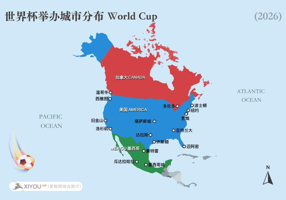 我們理了一個地圖,是這次美加墨世界盃的舉辦城市。