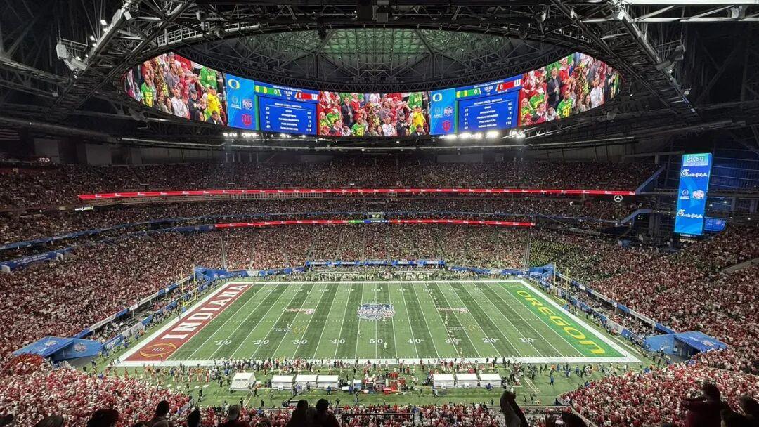 這裏是NFL達拉斯牛仔隊的主場,外號“傑裏的世界”。這個體育場最牛的是頭頂那塊4K巨型屏幕,有半個足球場大,能坐8萬人。