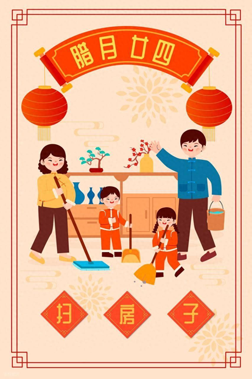 “二十三,糖瓜粘;二十四,掃房子”,臘月二十四,是民間傳統的 “掃塵日”,又稱 “撣塵日”,是春節前最重要的民俗儀式之一。核心是通過年終大掃除,清除舊歲積塵、驅除病疫,寄託 “除陳布新” 的願望,爲新年迎接福氣、祈求安康。