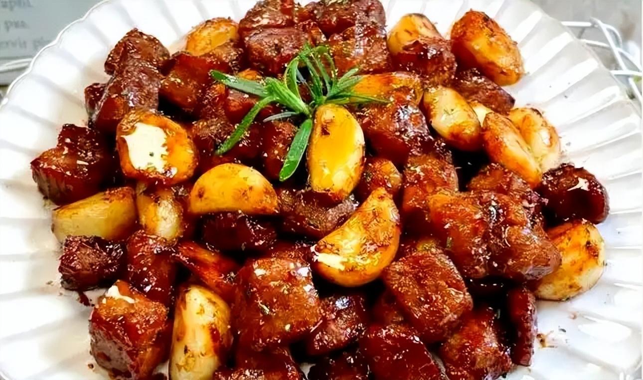步驟:牛裏脊切塊,用生抽、海鹽、黑胡椒粉、食用油醃製30分鐘。蒜頭冷油下鍋,中小火炸至金黃撈出備用,留底油。調製黑胡椒醬汁:黑胡椒粉、生抽、老抽、蠔油、砂糖、玉米澱粉、牛肉湯和清水混合均勻。鍋中油燒至六成熱,下牛肉粒大火翻炒變色後過濾多餘油脂,倒入醬汁中小火翻炒至粘稠,加入蒜頭翻炒均勻即可。蒜香濃郁,牛肉多汁,適合年夜飯C位菜,紅火喜慶。
