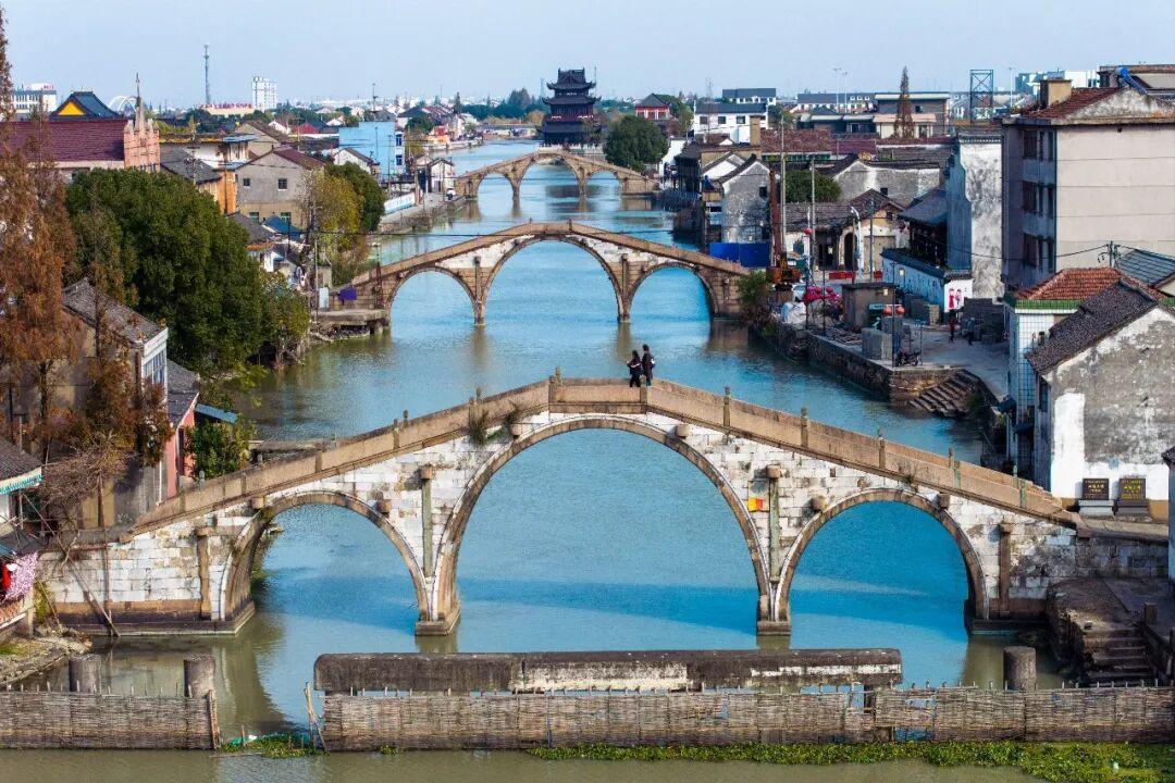 雙林古鎮地處太湖南岸,古鎮上最出名的是三座古橋,同一條河上300多米的距離,萬奎橋、化城橋、萬字橋呈現縱向一字分佈,形成一幅獨特的畫面,站在橋面上你會分不清是湖還是海。
