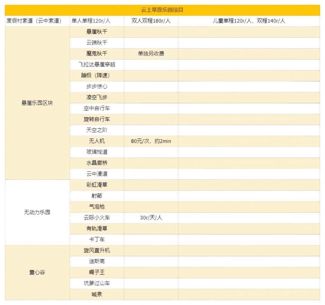 我列了個雲上草原遊玩項目的表格,大家自取哈: