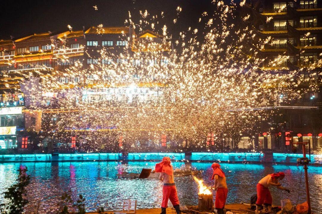湖州接壤太湖的片區很大一部分在長興,邊上就是太湖古鎮,近兩年經過湖州文旅的大力建設,已經實現華麗變身;不僅有傳統的高空煙花,還有非遺技藝打鐵花表演,而且觀看這個演出是免費的!