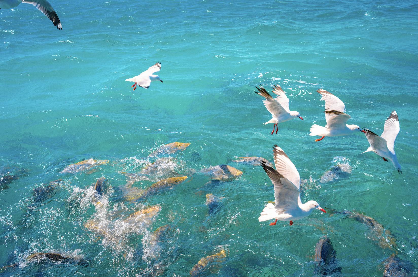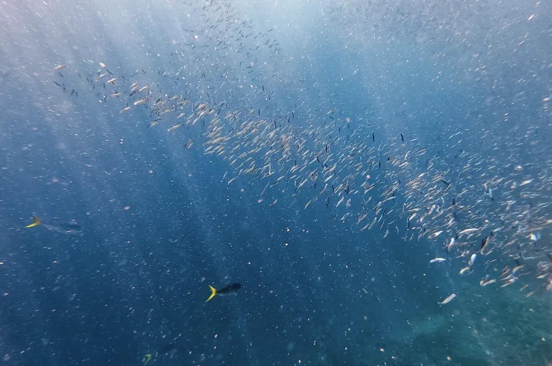 玻璃底船這個很適合不方便下水的人去體驗,不僅能看到豐富的珊瑚礁、魚羣和海龜,還看到了海鷗與魚兒“爭食”的畫面。如果要浮潛,浮潛裝備可以在島上領取(注意島上不提供浮潛服,要自帶泳衣哦)。