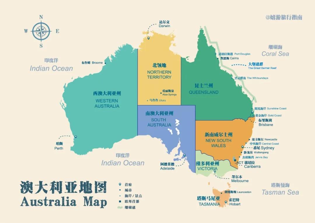 澳大利亞總共六個洲,再加上兩個領地。