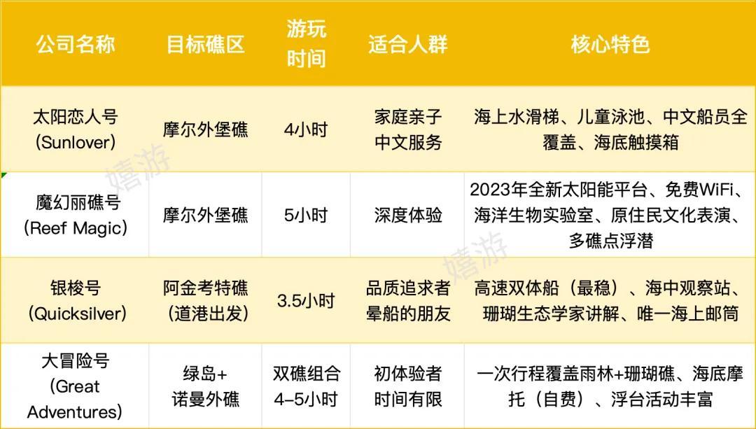 北部和中部主要是大堡礁,玩出海;