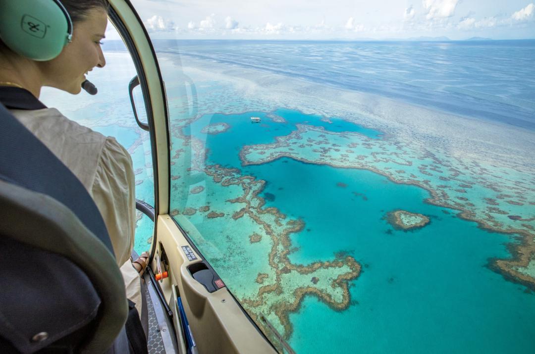 聖靈羣島可以參加直升機Tour,白天堂沙灘 + 心形礁 + 外礁浮潛。