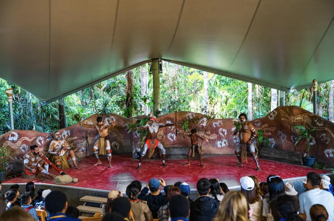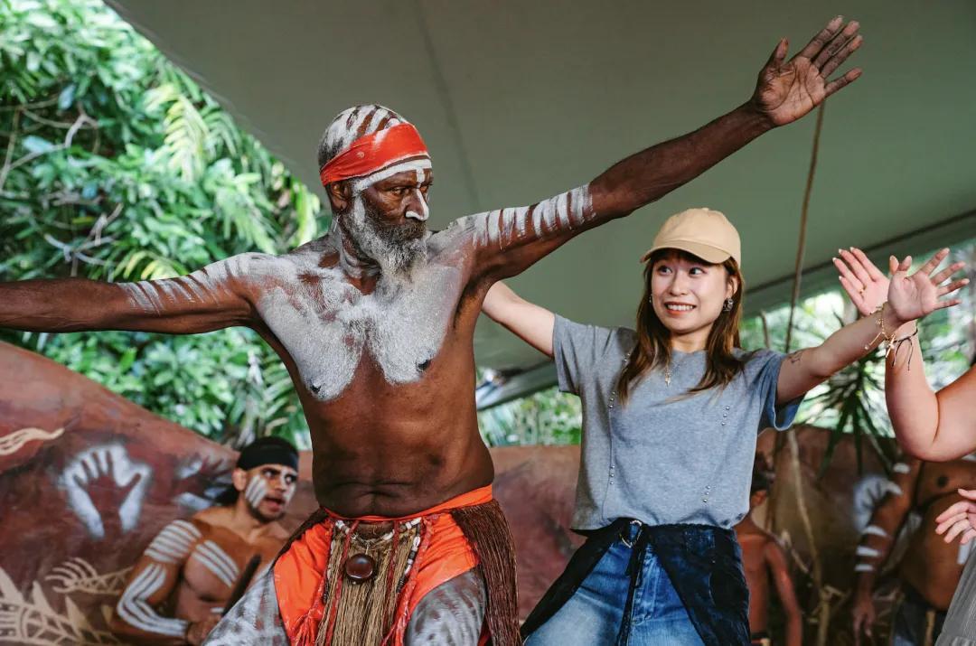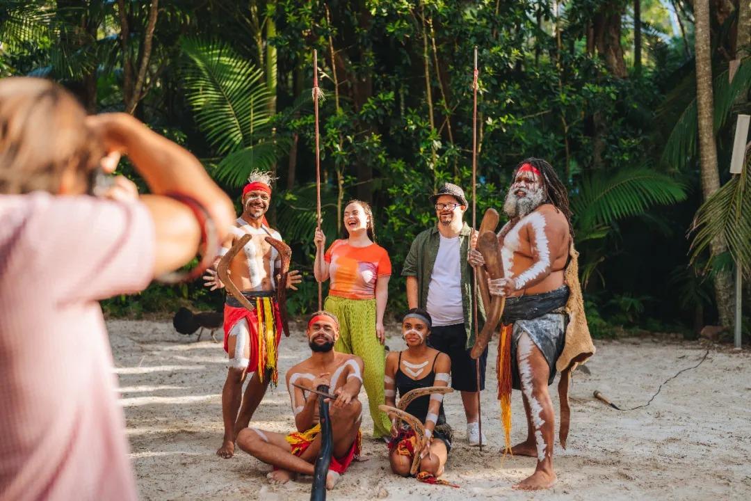 我們有嘗試了回力鏢、瞭解土著藝術和工具、觀看土著人標槍投擲教學,最後還能與他們合影。