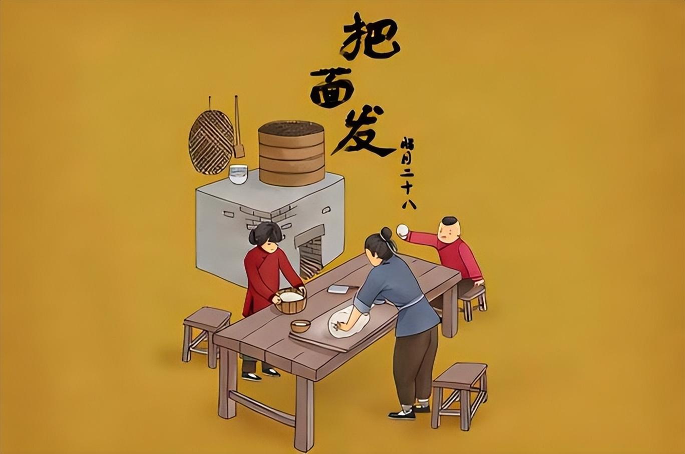 “二十八,把面發”,這是流傳最廣的年俗,發麪的“發”,寓意發財、發家、運勢大發。這一天,和上一盆麪粉,靜待發酵,麪糰慢慢膨脹,象徵着日子蒸蒸日上、家業日漸興旺,也寄託着大家對來年富足生活的期盼。