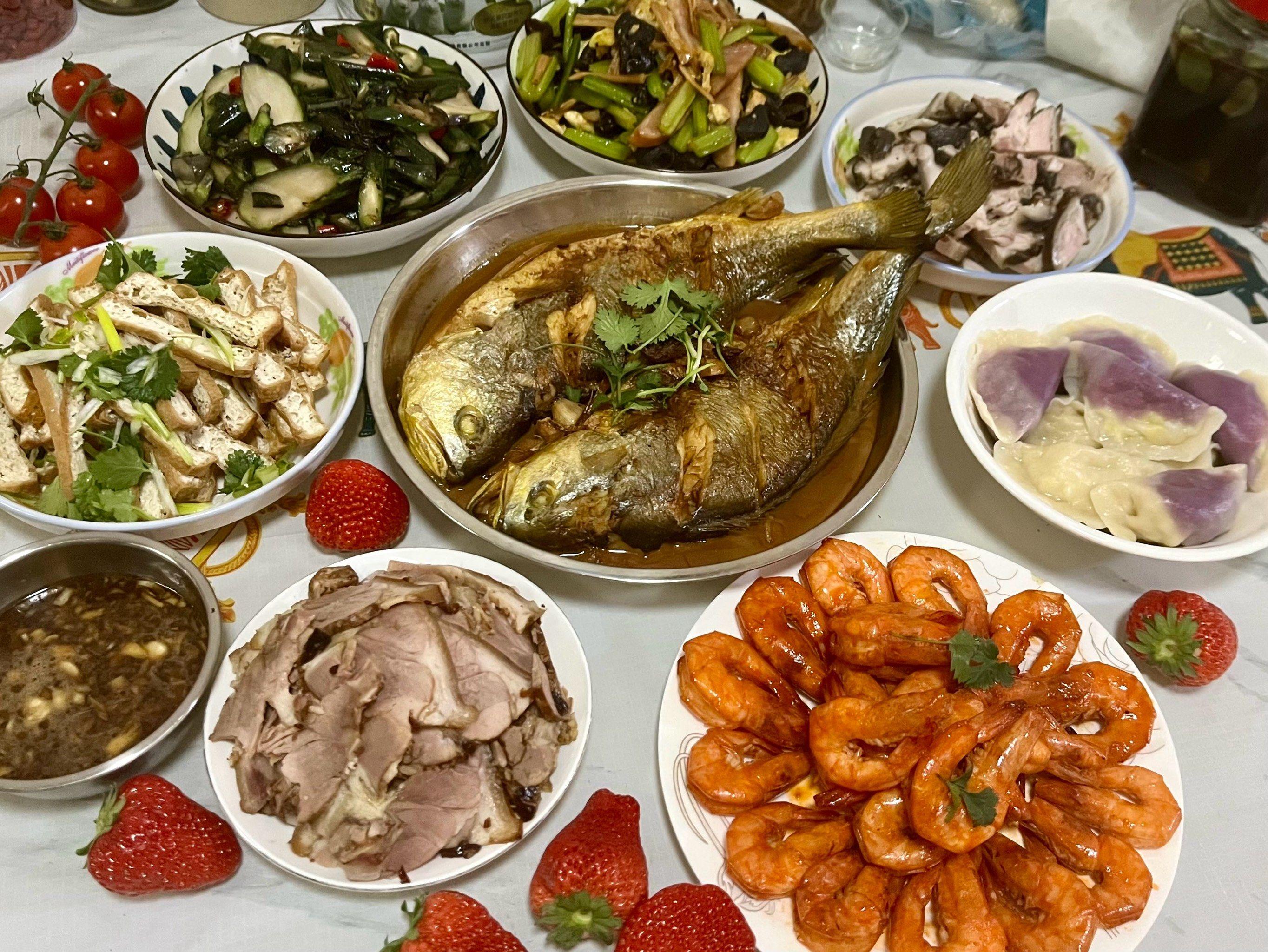 喫魚,取"年年有餘"之意。 但魚不能喫完,要留下頭尾,寓意"有頭有尾、年年有餘"。有些地方講究喫鯉魚("禮"諧音)、鯽魚("吉"諧音)、鰱魚("連"諧音),各有各的講究。魚這道菜上桌後,大家象徵性地夾幾筷子,誰都不動魚身,留到初一,這叫"留餘"。