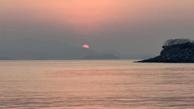 Gif圖壓縮了畫質,誰懂看到落日那一刻,和海面一起盪漾的,是我的嘴角呀!