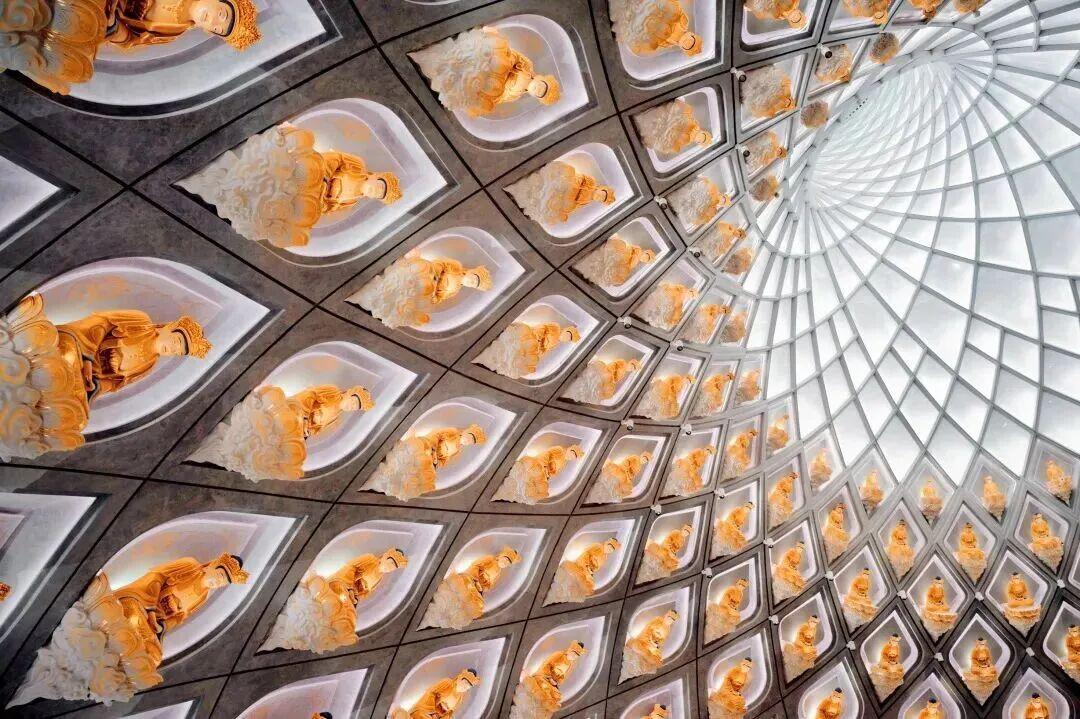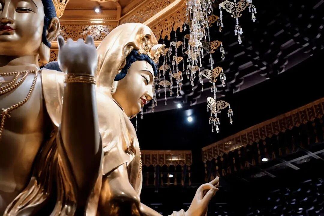 整座觀音聖壇一共有九層,正確朝聖姿勢是每層繞順時針逛,一層層往上。哪怕是無神論者,也會震撼於那些繁複莊嚴的佛像,精美對稱的設計。