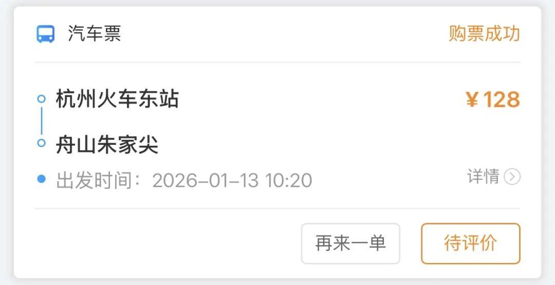比如,杭州東站直達舟山朱家尖蜈蚣峙碼頭的旅遊專線,全程大概三個半小時,座椅比高鐵二等座舒服,經過跨海大橋那段路風景賊好。