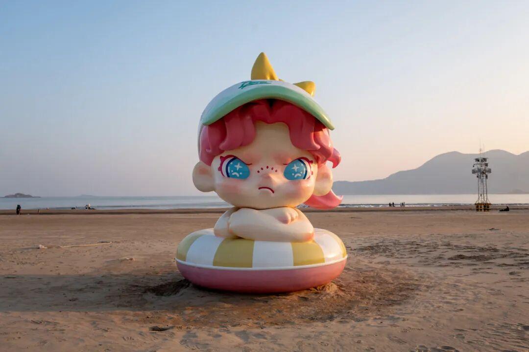 相比東沙,我覺得南沙更適合帶娃過來玩,景區裏有很多”大型盲盒”,萌得一塌糊塗,沙子也更細軟些。