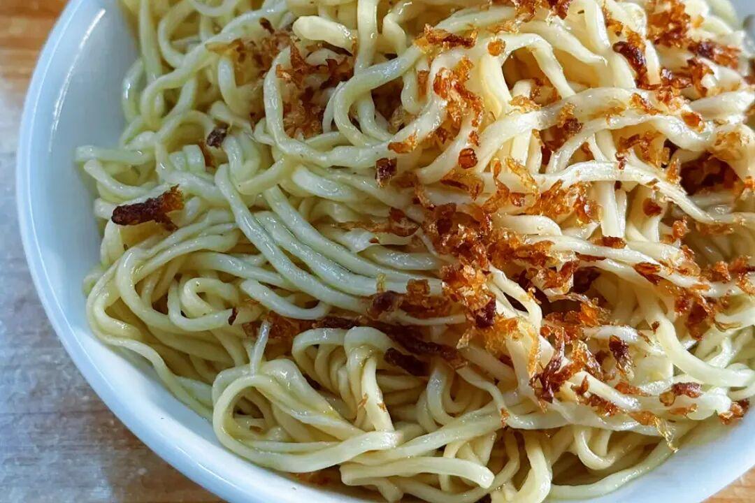 醃面是梅州客家早餐的標誌性早餐,筋道的鹼水面拌現煉豬油、祕製醬油,再鋪炸香的洋蔥碎/蒜酥,鹹香彈韌不油膩。