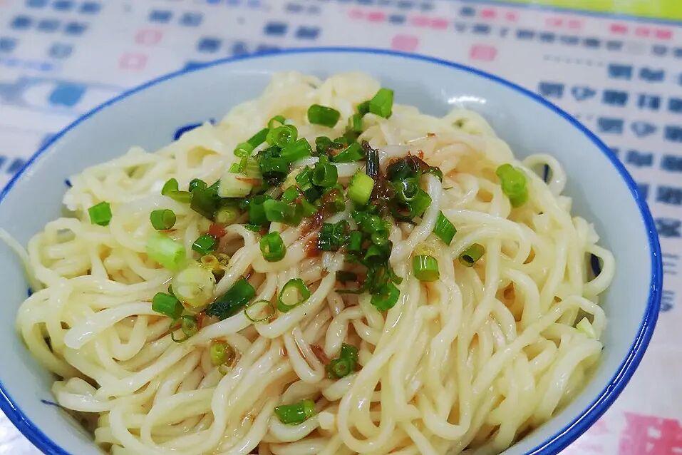 這家也是經典的醃面加湯。麪條裹着蒜香和豬油香,爽滑有嚼勁,每一口都能感受到鹼水帶來的獨特筋道。
