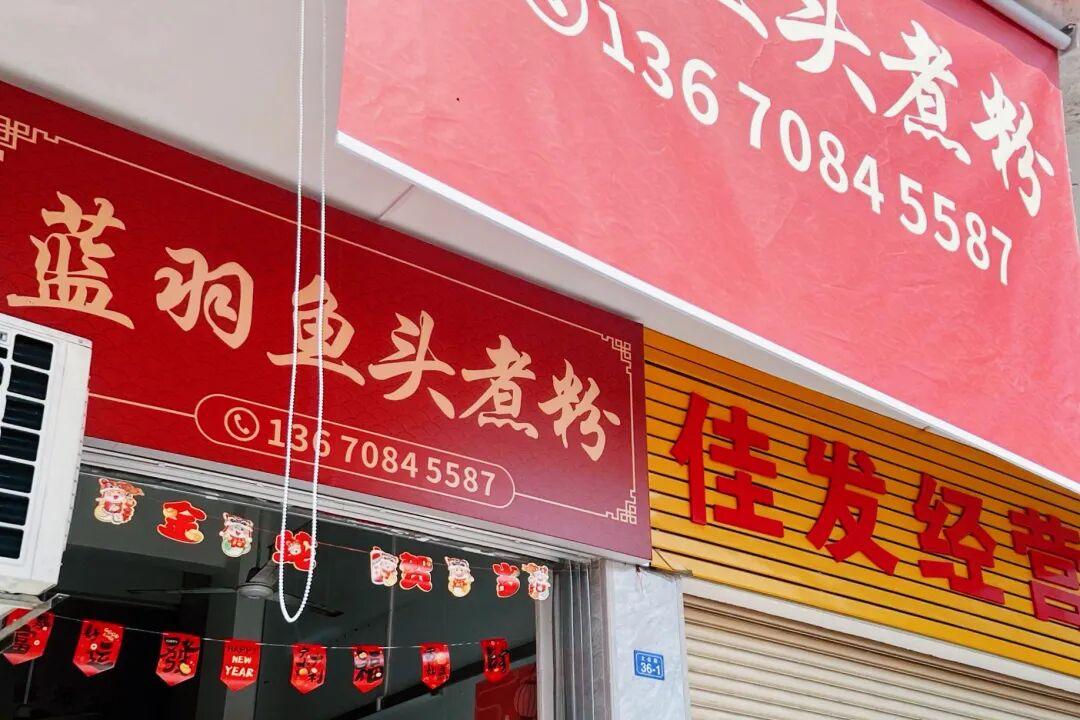 這家藍羽魚頭煮粉是開了蠻久的老店,主打奶白鮮濃的魚頭湯加上爽滑米粉。位置也在梅州老街附近,門店不大、裝修樸實。