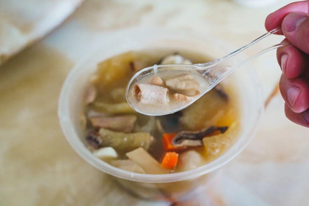 所有食材的鮮味都融合到了湯底中,還加了紅薯粉勾芡,湯汁濃稠、順滑、透亮。