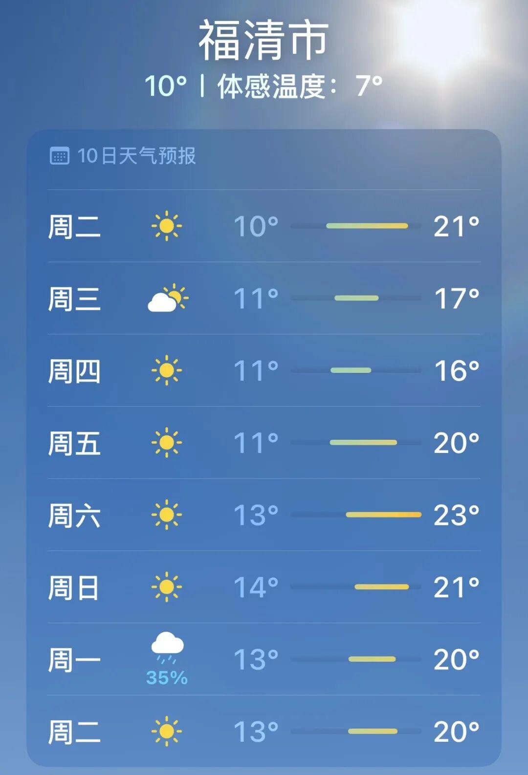 給大家看一下最近福清的天氣,很適合寒假春節來一場避寒之旅。