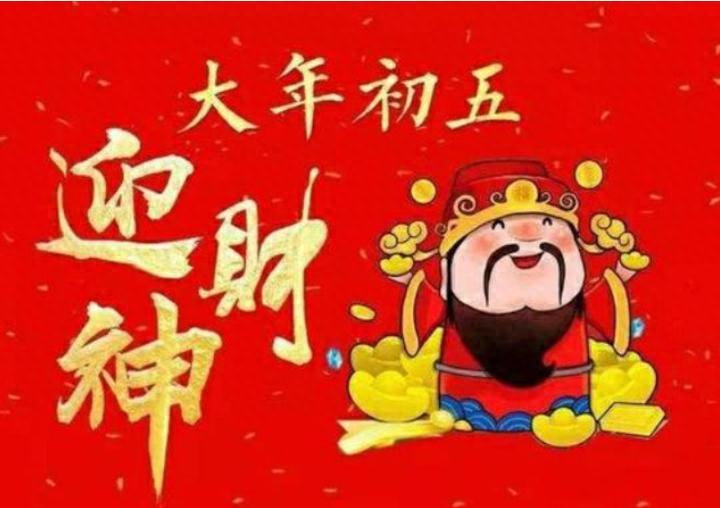 初五是財神爺下凡“查戶口”的日子。老人們常說:“財神不入空門,不進冷宅”。白天的時候,家裏一定要留人,最好是熱熱鬧鬧的。供桌要擺上:三樣供品(比如餃子、鯉魚、大紅棗),香要燒起來。
