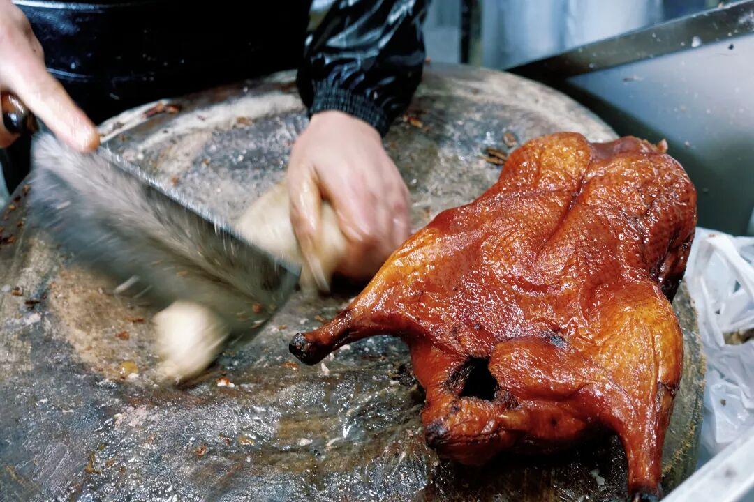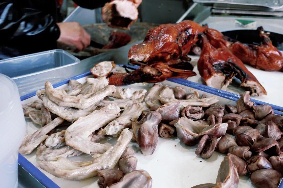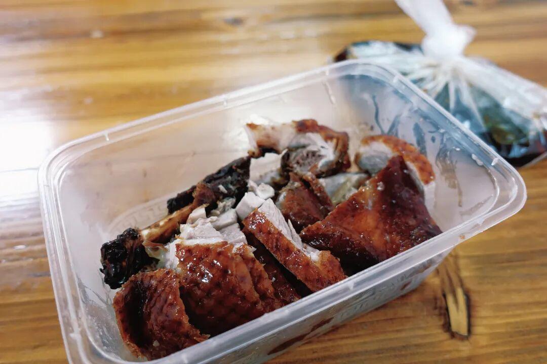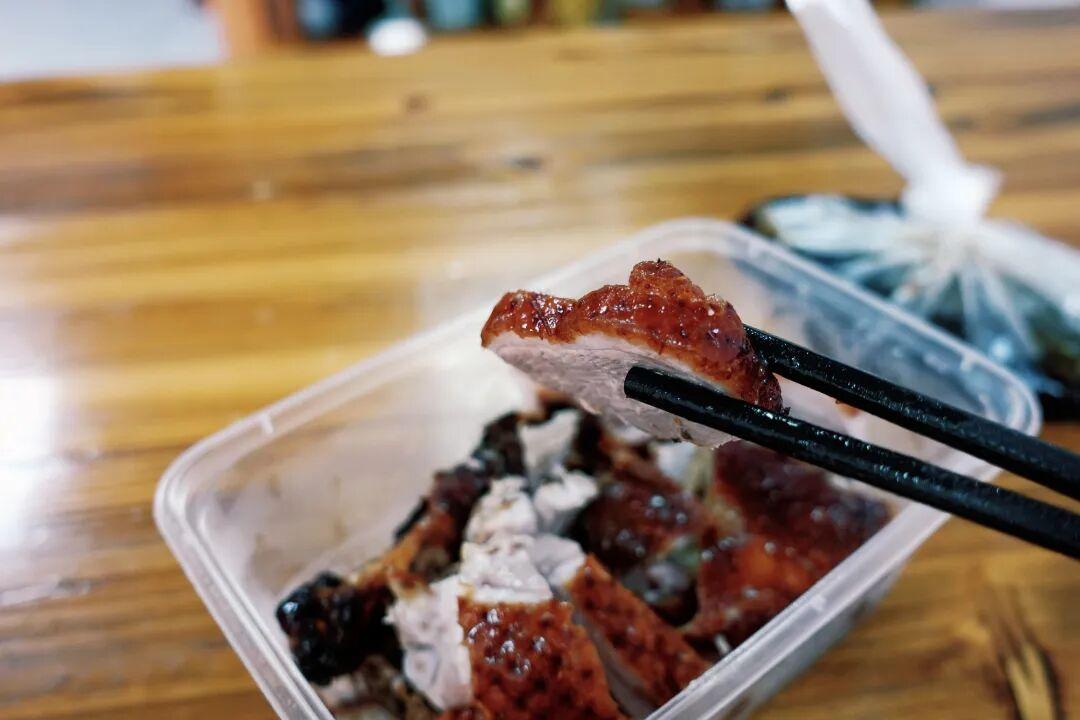 鴨子本身皮酥肉爛,肉味鹹鮮之中帶着甜味,鴨皮紅得鮮亮,配麪條或者鴨油酥餅一起喫都很絕!