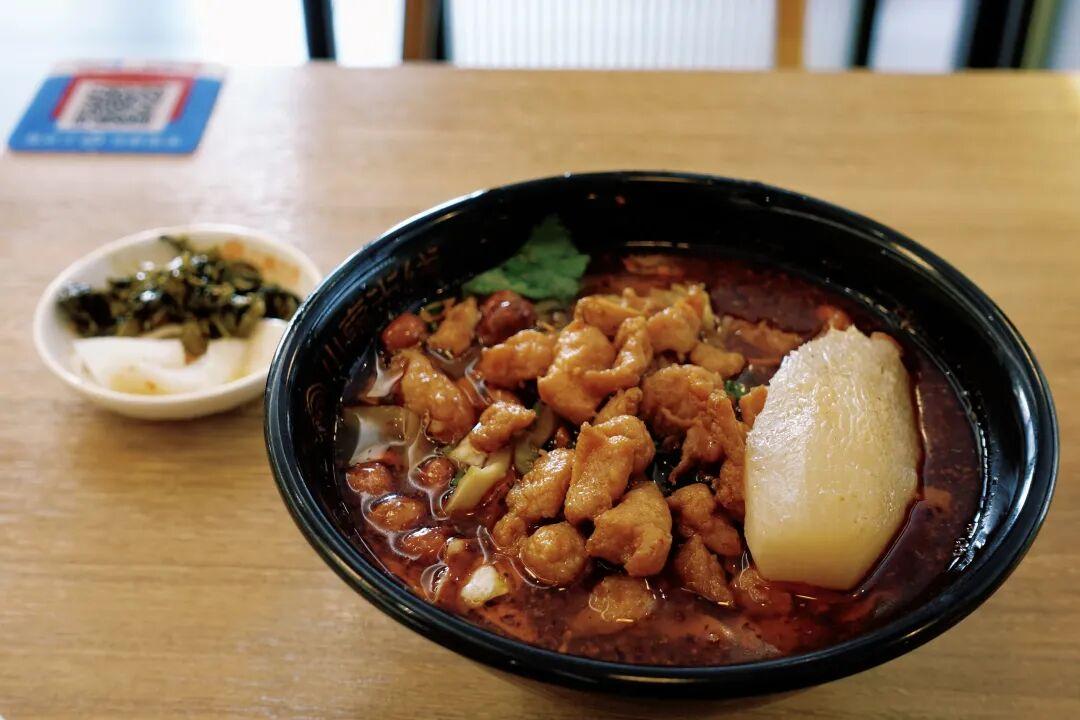 就連自帶的一大塊蘿蔔也入味軟糯,直接把我給喫服了,難怪能在蕪湖把分店開得到處都是呢,他們家免費的小料醬菜也非常好喫。