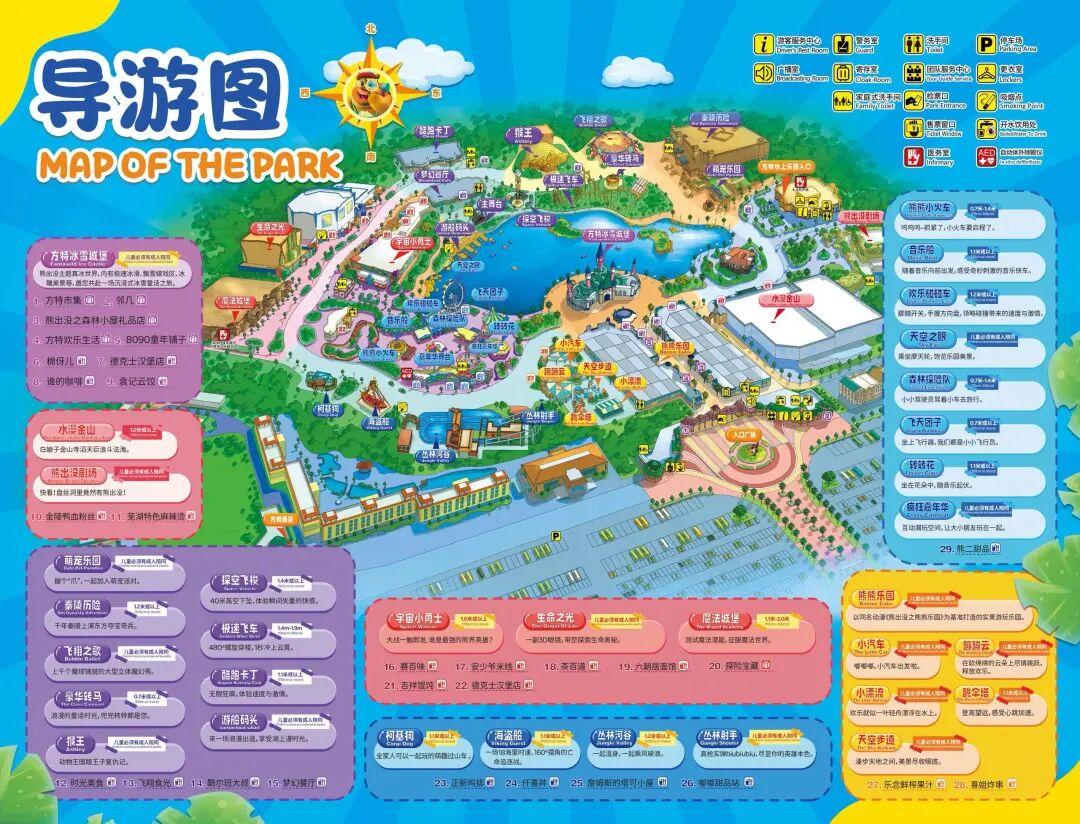叢林飛龍(招牌過山車,刺激,開園先衝)-靈魂之旅(膽小鬼專屬過山車)-高空飛翔&旋轉飛椅&雙層轉馬&情侶飛車(一堆旋轉項目,暈車的人別玩)-極地快車(有推背感的過山車)-熊出沒劇場-仙島探祕(漂流,提前準備雨衣)-瘋狂馬戲團(360°大擺錘)-雷峯塔(室內跳樓機)-女媧補天(4D小火車,衝第一排視角)-九州神韻(科普性4D項目)-牛郎織女(4D項目,有點無聊)-孟姜女(比預計的好看)-千古蝶戀(大型演出)