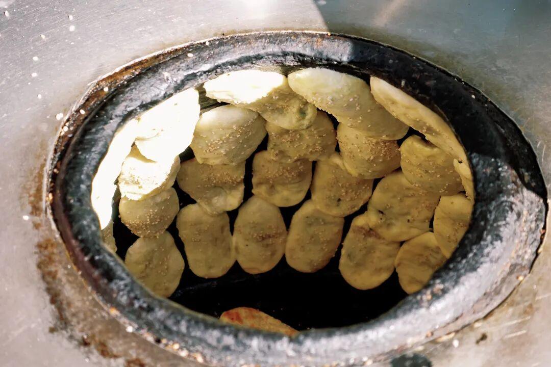 燒餅個頭不大,1塊錢一個價格也很實惠,明爐烘烤很快就能出爐,出爐後趕緊趁熱喫,熱燒餅和冷燒餅之間的差別,相當於人和蟑螂。