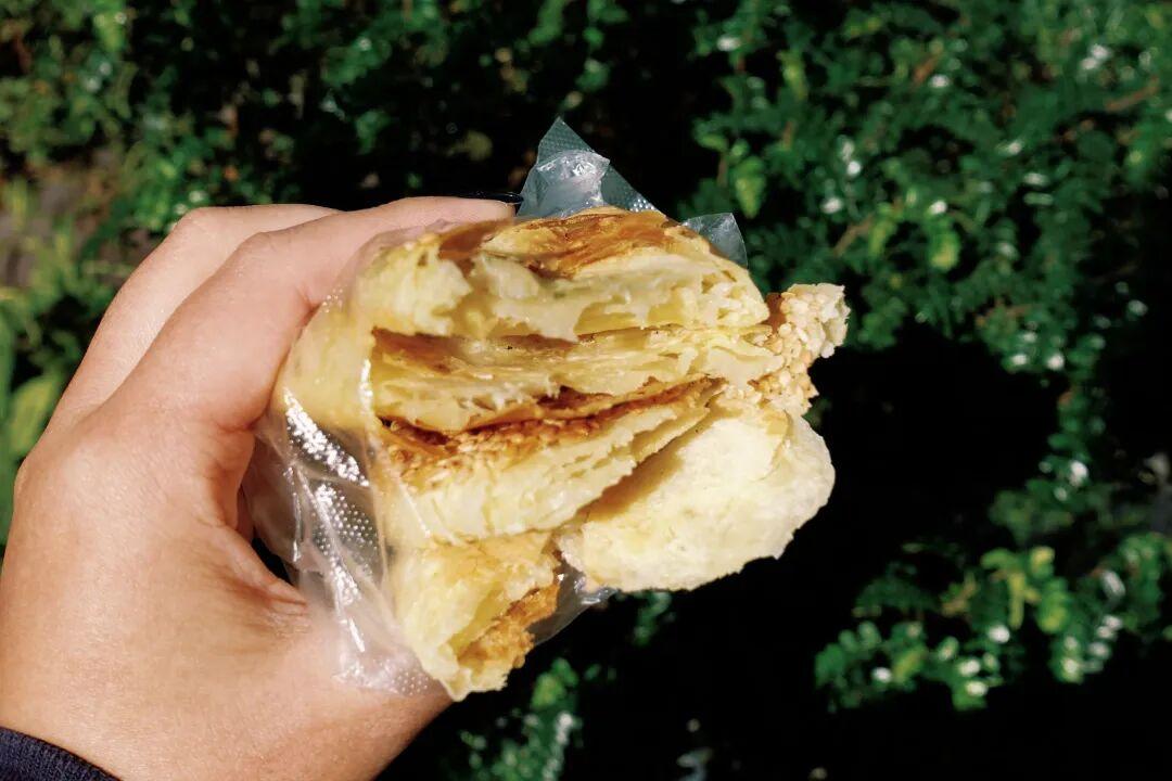 許波是蕪湖的燒餅老大哥,開酥開得特別漂亮,一口下去酥到直掉渣渣。